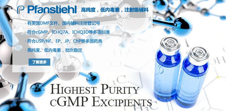 “熱烈祝賀Pfanstiehl的注射級甘氨酸Glycine(G-140)喜獲CDE登記號F20250000403, 這是Pfanstiehl產品獲得的第18個CDE登記號!”甘氨酸在醫藥輔料制劑中應用廣泛,, 可作為緩沖劑,增溶劑,穩定劑等,具有諸多優勢。Pfanstiehl秉承一貫高品質理念,為滿足全球生物制藥行業對于高品質甘氨酸的需求,隆重推出的注射級甘氨酸Glycine (G-140), 具有超高純度,超低內毒素,超低金屬殘留的特點,單獨檢測29種金屬離子,并且新增DNA,RNA,DNA酶,RNA酶和脂肪酶,亞硝酸鹽等多項質量指標的檢測,符合多國藥典規定(USP, EP, BP, JPE, ChP),可用于生物治療性藥物和疫苗的生產。產品信息:· 產品名稱:Glycine, High Purity, Low Endotoxin, Low Metals, USP, EP, BP, JPE, ChP (G-140)· 中文名稱:甘氨酸· 分子式:C2H5NO2· 分子量:75.07 g / mol· CAS號:56-40-6· 產品貨號:G-140產品特點: · 超高純度,超低內毒素,超低微生物含量,超低金屬雜質殘留· 質量指標新增DNA,RNA,DNA酶,RNA酶,脂肪酶和亞硝酸鹽檢測· 符合多國藥典:USP, EP, BP, JPE, ChP· 符合ICH Q3D標準· 符合GMP標準· 已獲DMF和CDE登記號 產品應用:· 緩沖劑· 穩定劑· 增溶劑如果您對Pfanstiehl注射級別Glycine G-140感興趣,歡迎聯系Pfanstiehl 中國區代理商北京西美杰科技有限公司獲得如下詳細的產品概況說明文件和測試樣品。Pfanstiehl Inc.最新產品系列如下,歡迎聯系北京西美杰科技有限公司獲取100g裝免費樣品。北京西美杰科技有限公司為Pfanstiehl中國代理,為客戶提供完善的技術支持與售后服務。歡迎撥打西美杰客服電話400-050-4006或者登陸網站www_xmjsci_com.hxxdcity.com了解更多信息。 更多>